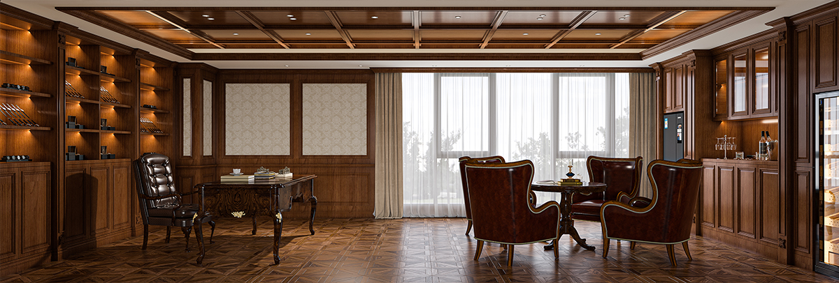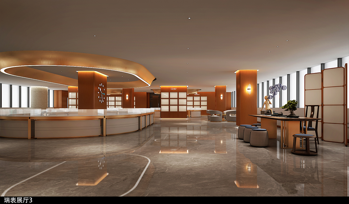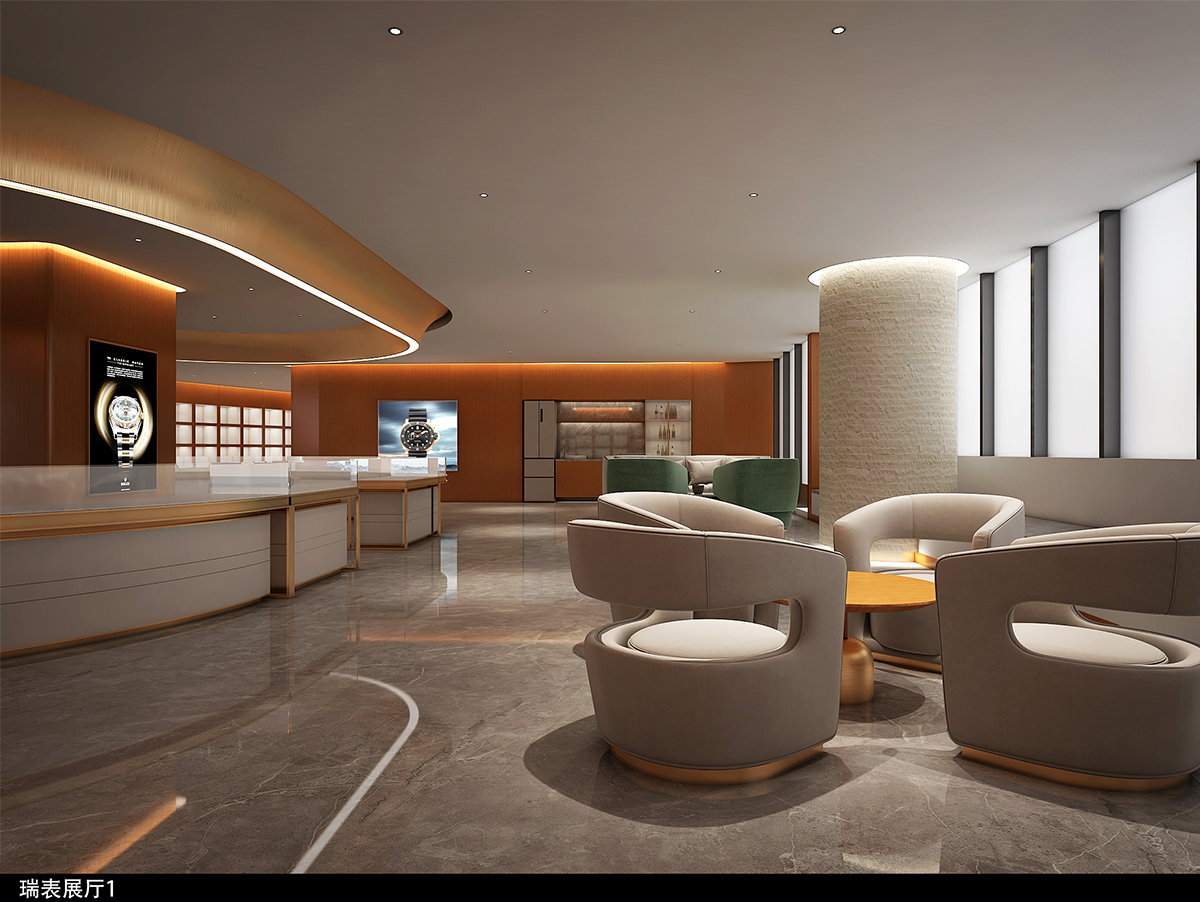 设计理念:该项目主营为手表展厅以及二奢的业务,本案采用爱马仕橙的主色基调,结合LV最新展厅的结构,给客户营造空间体验感。雪茄吧空间做的是复古美式的风格,整个空间打造昏暗的效果,与雪茄配威士忌的氛围刚好完美融合。招待包间为新中式的风格,位于项目顶楼,属于一个独立的空间,地面采用的大理石和木地板的结合,配墙面的木饰面和顶上的艺术漆,住在建立一个奢华而有内涵的空间。