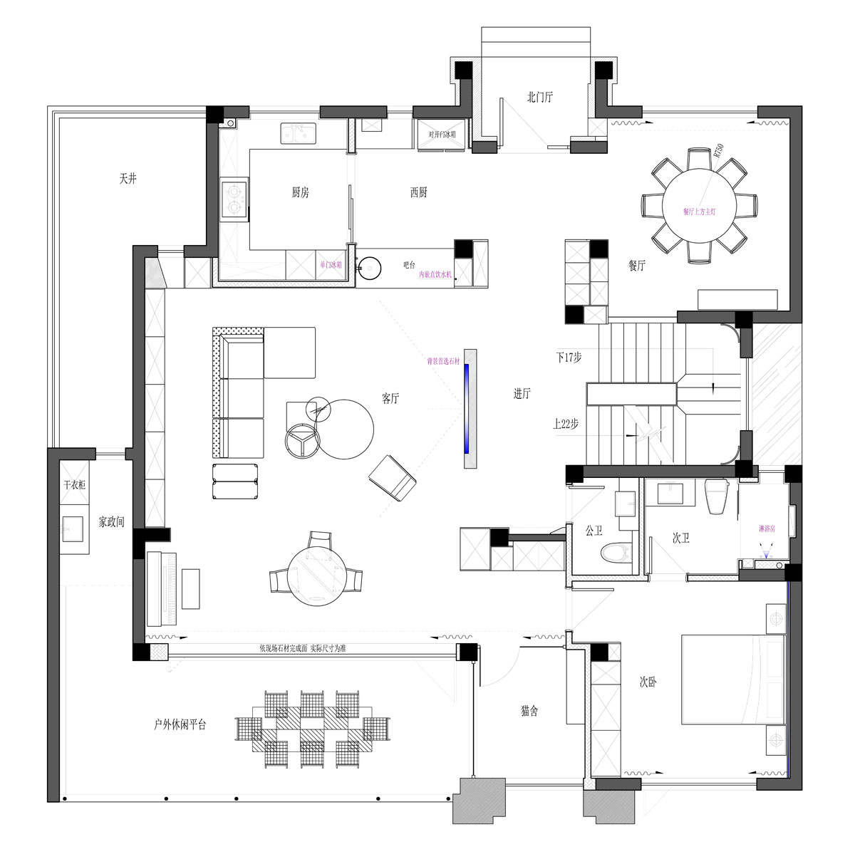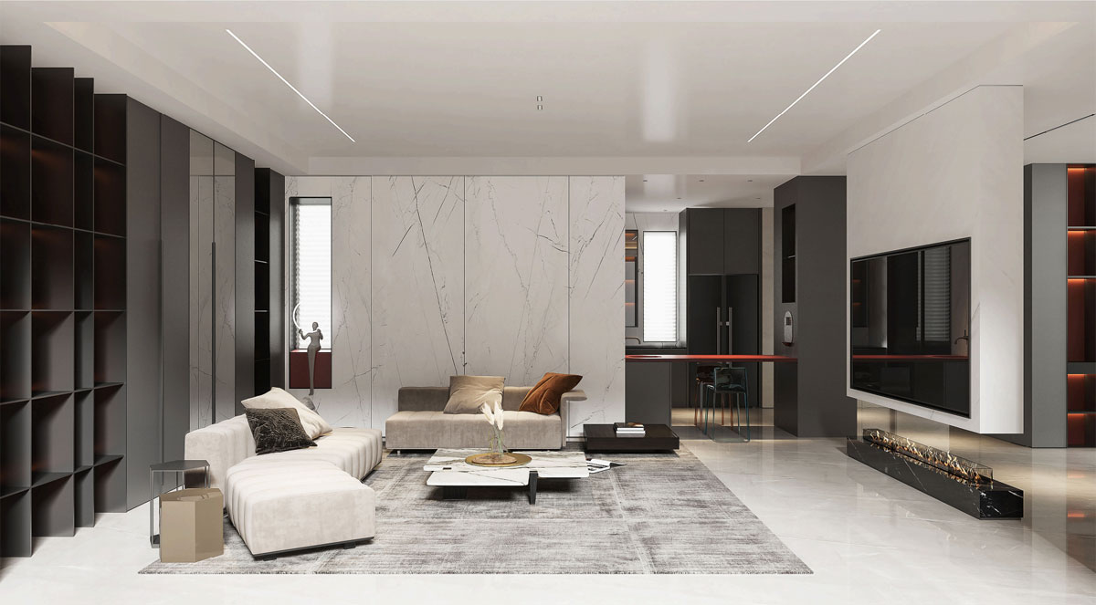 别墅主体是一栋地上二层、地下一层的欧式建筑,利落的线条、简洁的形体和纯净的色彩呈现出当代设计的美感,设计师在室内部分做了极简设计风格,内外空间形成强烈视觉冲击。