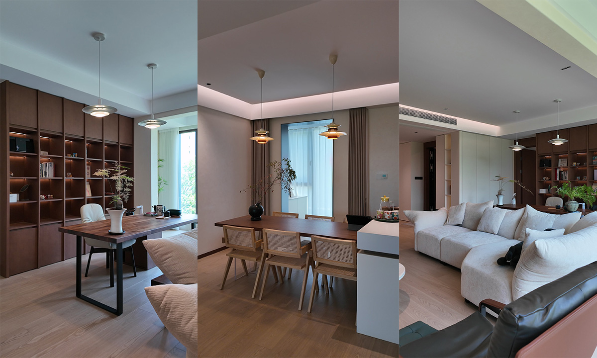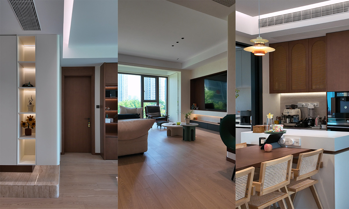 该项目为精装修改造项目,再维持精装修原有结构和部分材料的基础上,做的整体设计。本案设计的是原木风空间,全屋地板整铺,点缀天然洞石,绿植上选择南天竹和蕨类植物,保留原有房屋装修结构的同时,又加入了大量的新鲜元素。