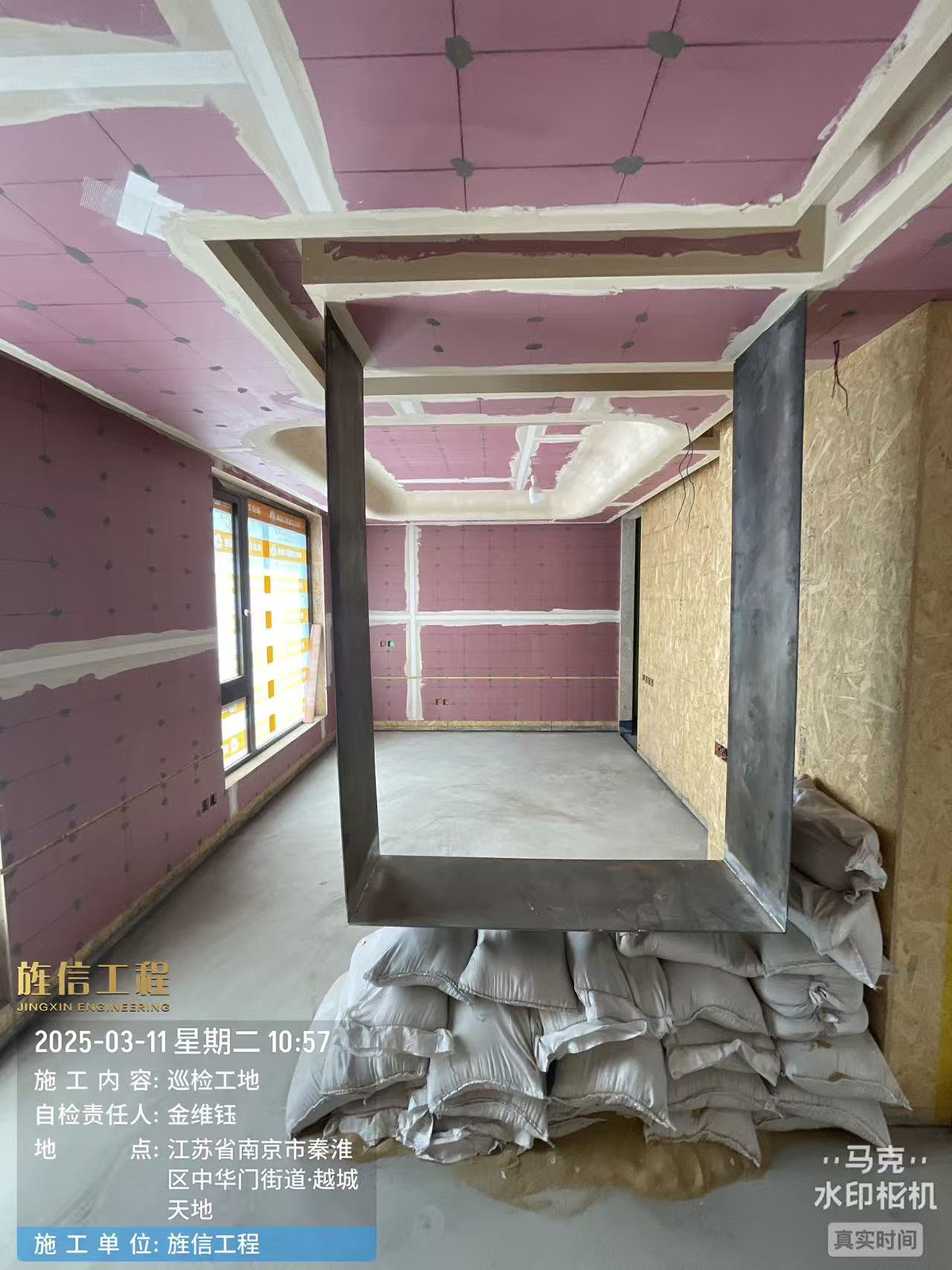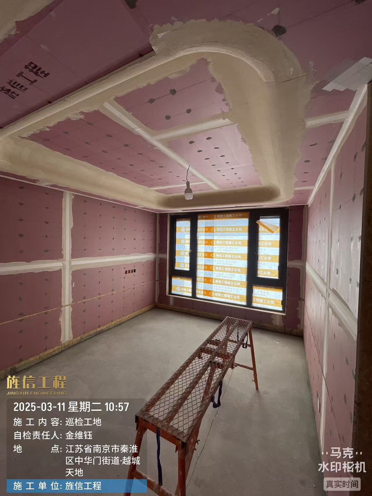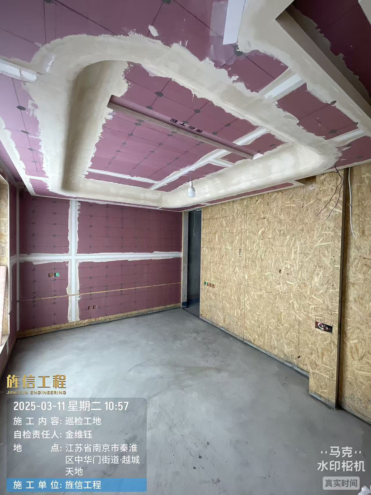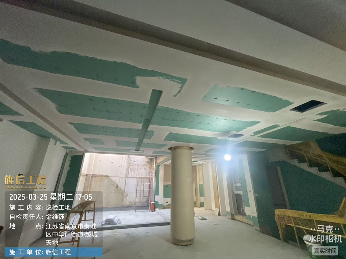 石膏板上的缝隙批上拉法基或白玉兰石膏粉,干燥后用白胶和接缝绷带把所有接缝处全部粘贴,包括所有吊顶拐角易开裂交叉区斜贴接缝绷带加固处理,其全部干燥后进行下一步程序施工。