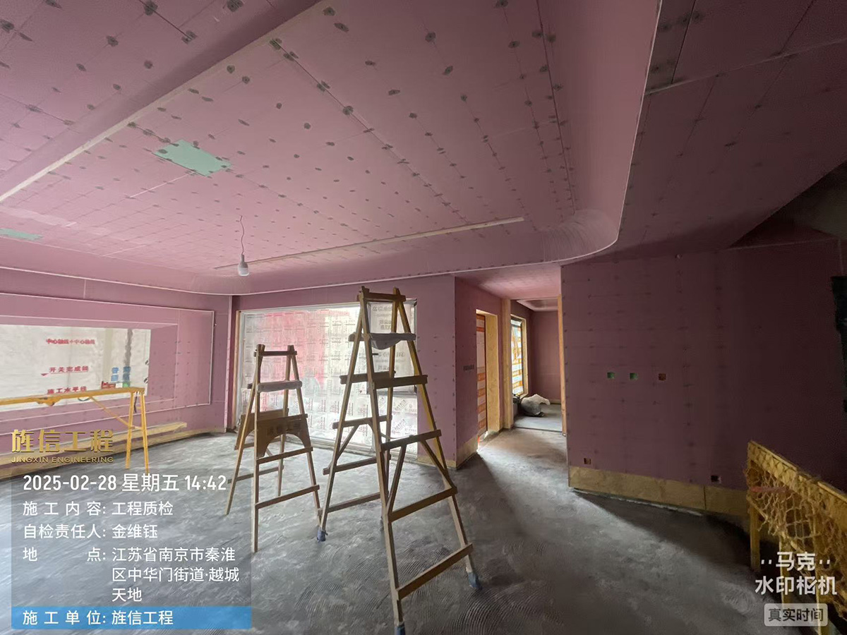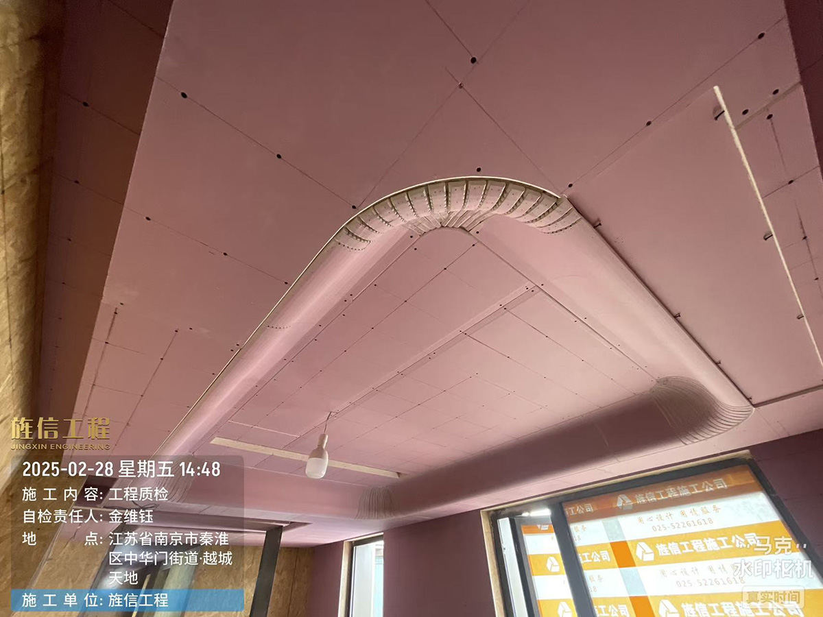 吊顶封板,拐角必须整板切割L型,防开裂,接缝处必须倒V型槽(八字口)原始边除外,接头处必须用石膏板刷白乳胶粘合固定 ,板面上放精准十字线,间距不大于15cm,用2.5自攻螺丝固定。如厨房卫生间需要用石膏板吊顶必须要用防水石膏板吊顶,刷防水乳胶漆工艺,确保板面无破损无污染。