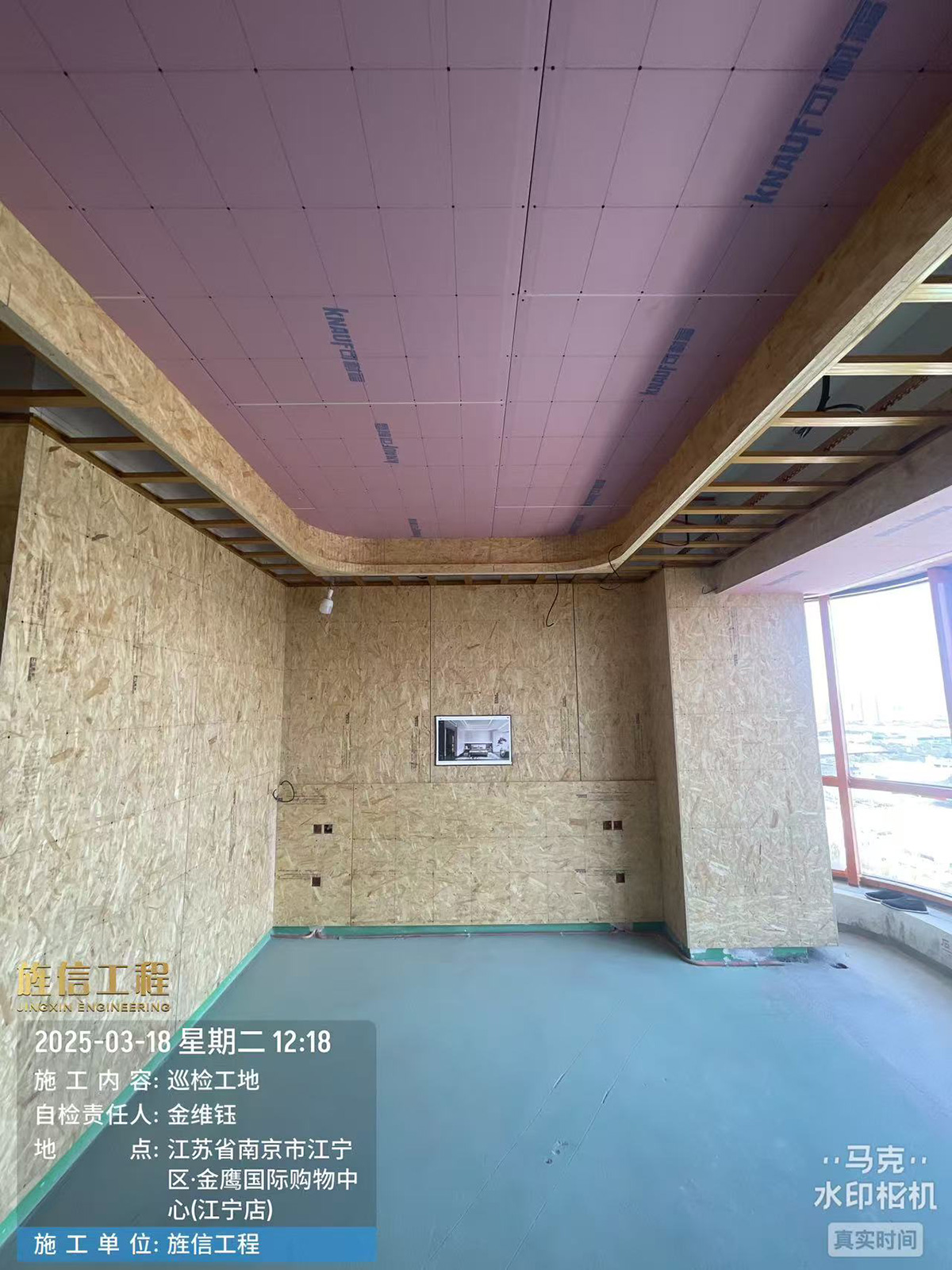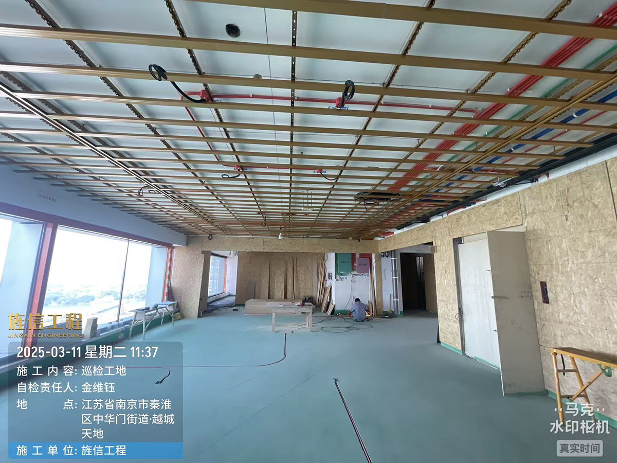 吊顶框架及基层框架,严格按照公司规范施工,吊顶立面龙骨间距60cm,吊顶平面龙骨间距不大于30cm,用铆钉及自攻螺丝固定,局部造型可用欧松板及木制龙骨,需要刷防火涂料,吊顶跨度大于90cm,必须打吊筋加主龙固定。如果室内满吊顶主灯灯位必须加吊筋或木龙骨加固处理。墙面基层框架在需要做基层的墙面放精准十字线,打木塞子固定,不大于40cm间距,基层板调至水平垂直。