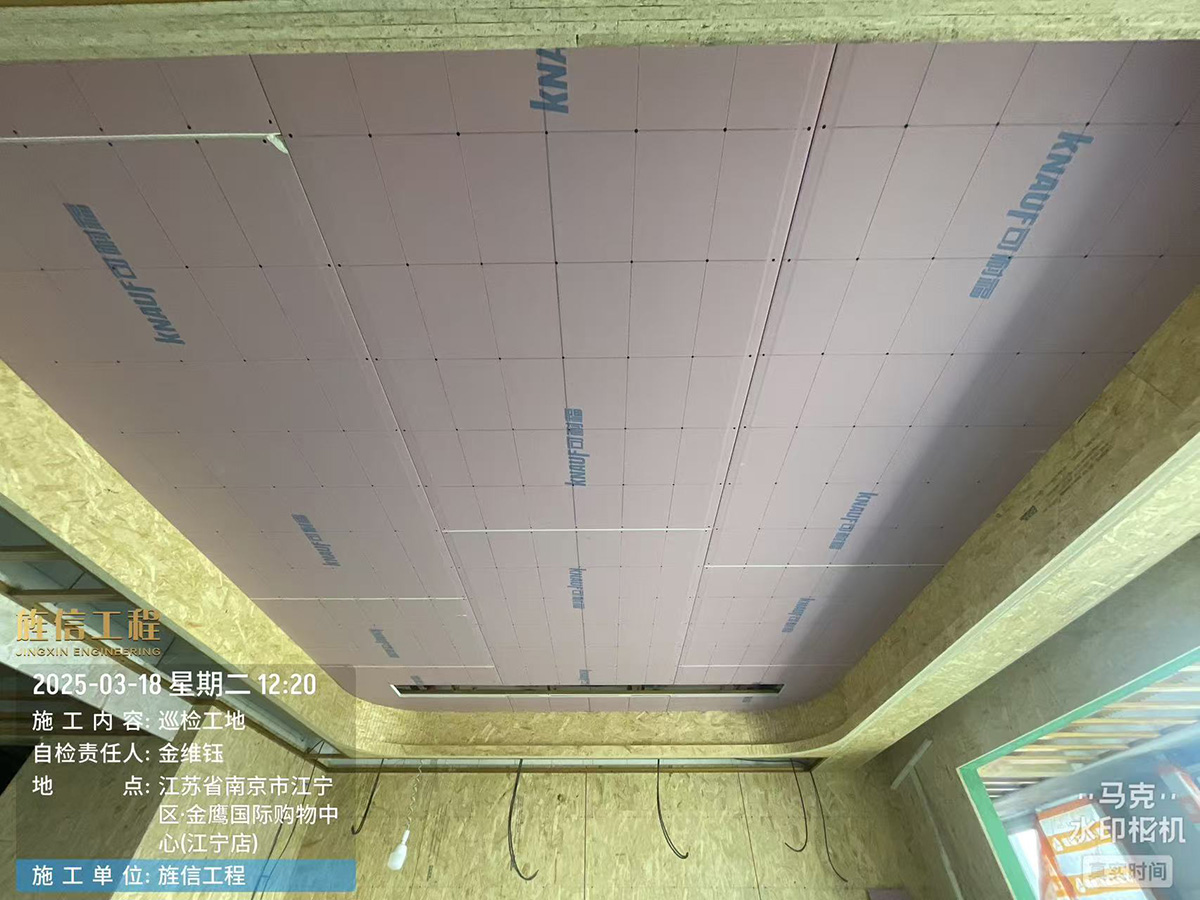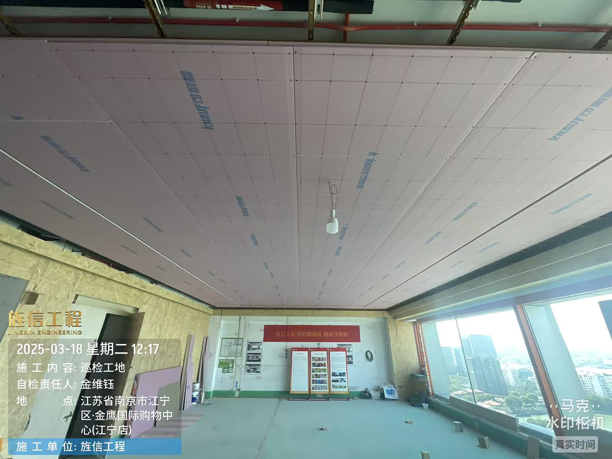 吊顶封板,拐角必须整板切割L型,防开裂,接缝处必须倒V型槽(八字口)原始边除外,接头处必须用石膏板刷白乳胶粘合固定 ,板面上放精准十字线,间距不大于15cm,用2.5自攻螺丝固定。如厨房卫生间需要用石膏板吊顶必须要用防水石膏板吊顶,刷防水乳胶漆工艺,确保板面无破损无污染。